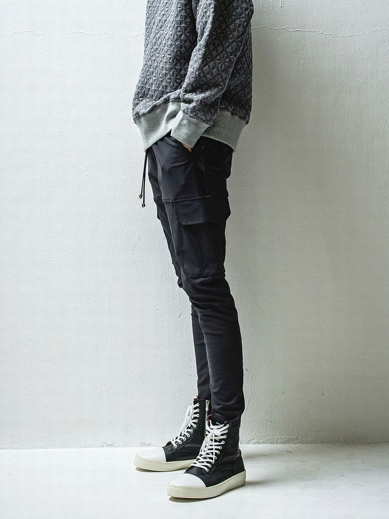 マチのないすっきりとしたカーゴポケットは、立体感とスマートさを考慮したデザイン。