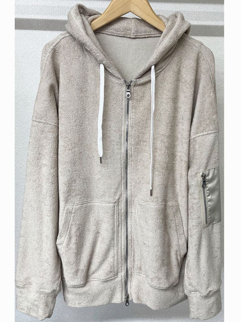 WEST pile zip loose hoodie (ベージュ) ジップアップパイルパーカー