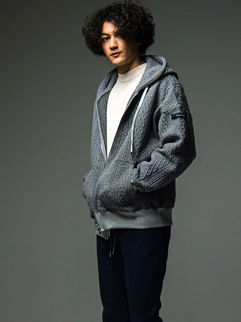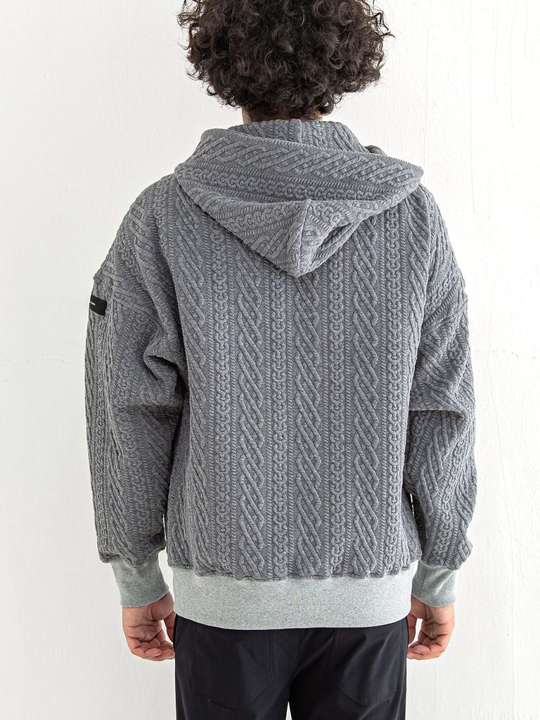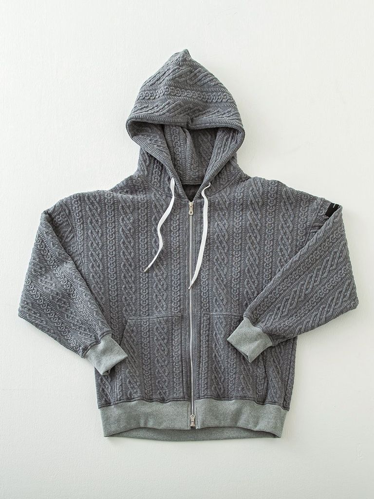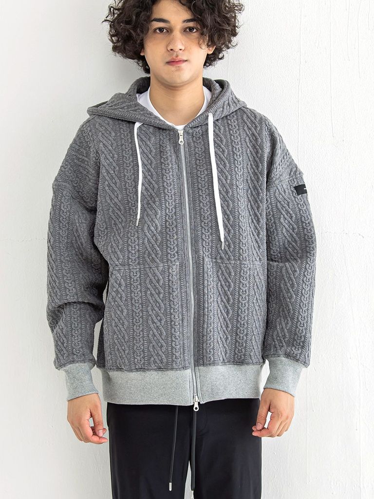 ROPE zip loose hoodie (グレー) 縄編みキルティングジップアップパーカー