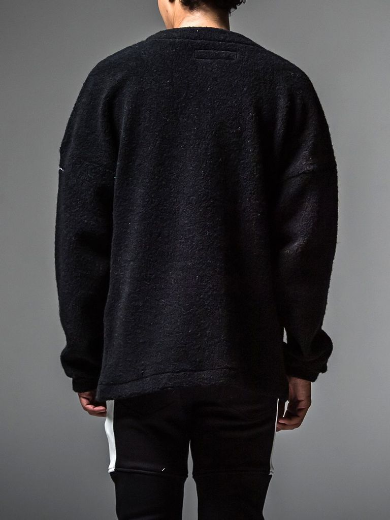 素材は愛知県一宮で作成した、丸網機で作成したボアパイル 、空気を含み編みたて、軽量感を表現しております。