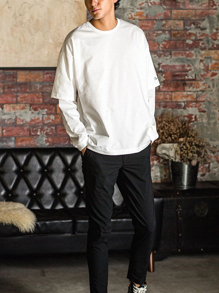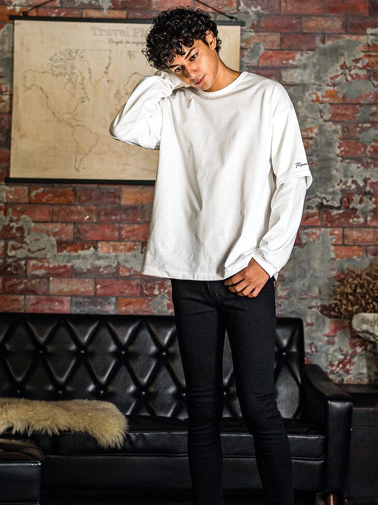 fake layered longsleave フェイクレイヤード ロングスリーブ Tシャツ (ホワイト) RC31-T-005