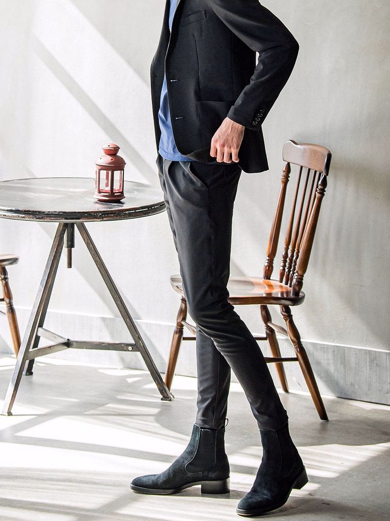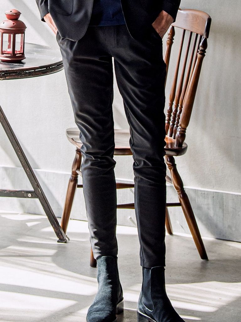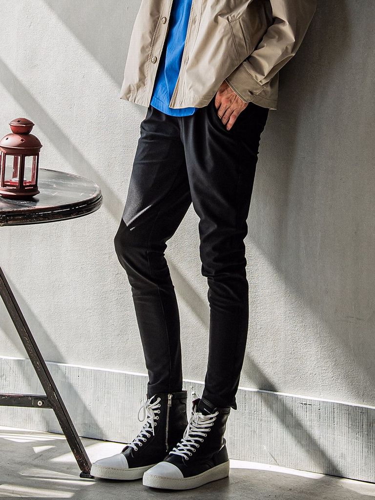 シルエットは脚のラインに沿った裾幅13.5cmの細すぎないタイトキックバックに優れ、型崩れしにくいシアサッカートリコットです。 清涼感と 吸水速乾の機能性も兼ね備えた素材です。☆