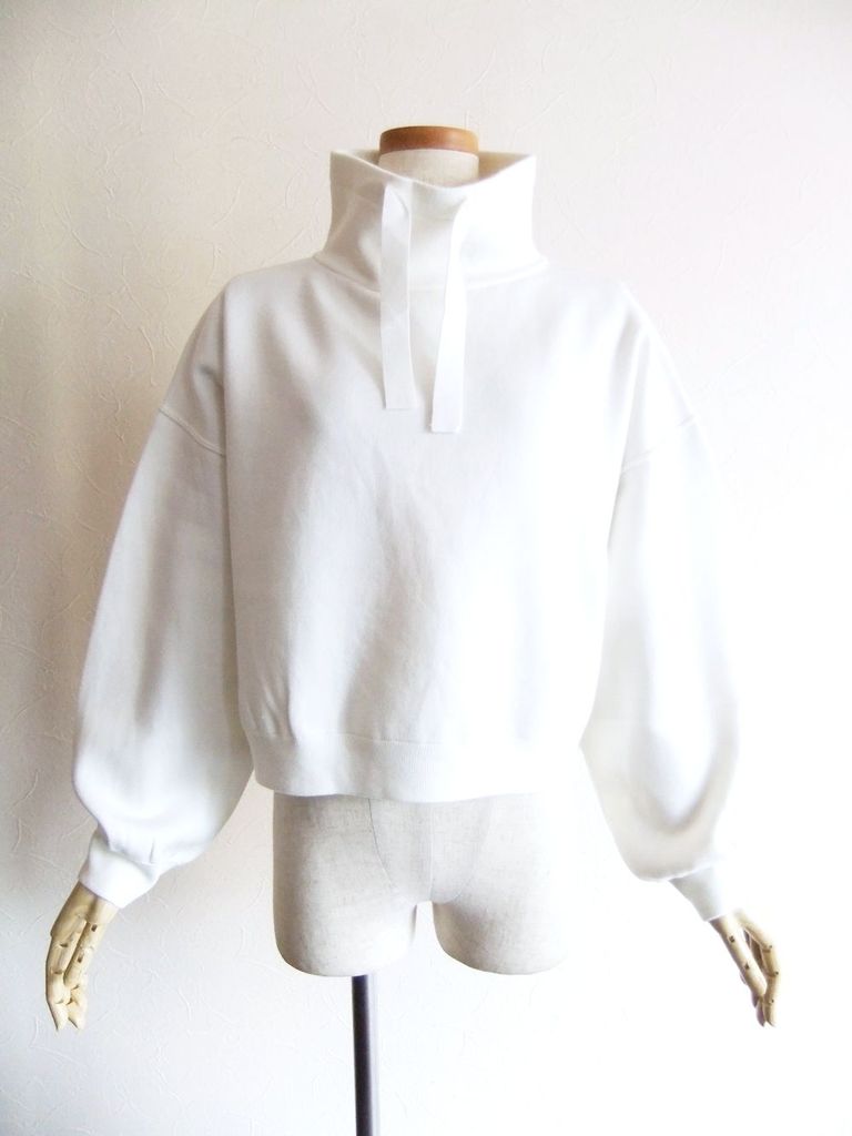 ハイネック リボン ショート丈 プルオーバー (ホワイト) 436976
