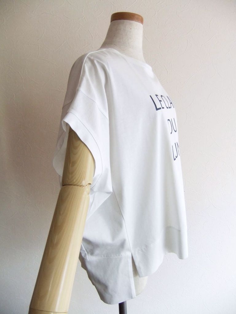 ロゴプリント フロントスリット コクーン Tシャツ (ホワイト) 526976