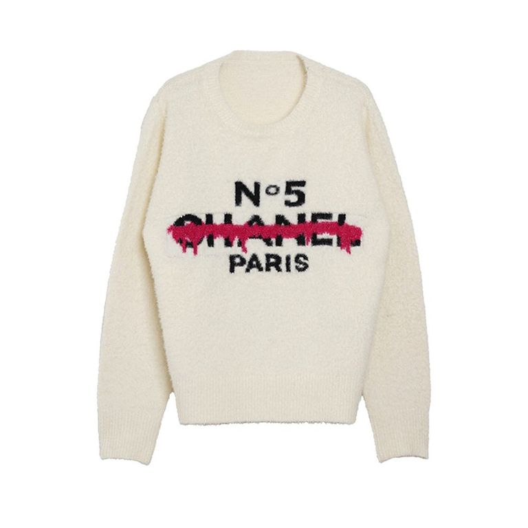 【MICALLE MICALLE Account】 HOMMAGE No5 SHAGGY KNIT (ホワイト) ロゴ ニット MAG110NDC