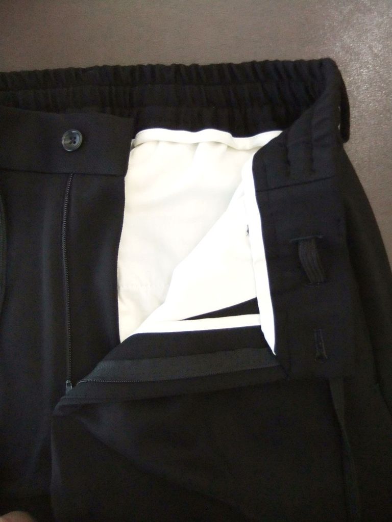 パンツはワンタックのスリムシルエット、ウエストの後ろ部分に目立たなく配置されたラバーバンドのお陰で、コンフォートな履き心地を作り出しています。☆