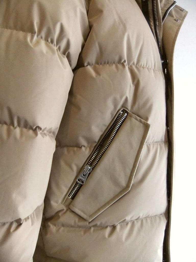 RILEYは、前立てとフード部分にリアルムートンを使用した、レイヤード風デザインが印象的なダウンジャケットです。