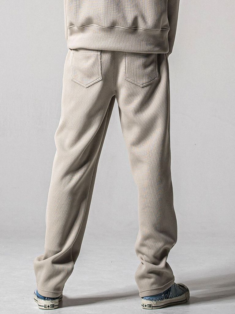ドローコードは中に入れ、ベルトなしでも穿ける仕様になっております。腰回りとヒップ周りはややタイトで腿周りから裾にかけてゆったりとしたシルエットです。