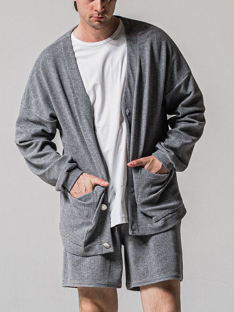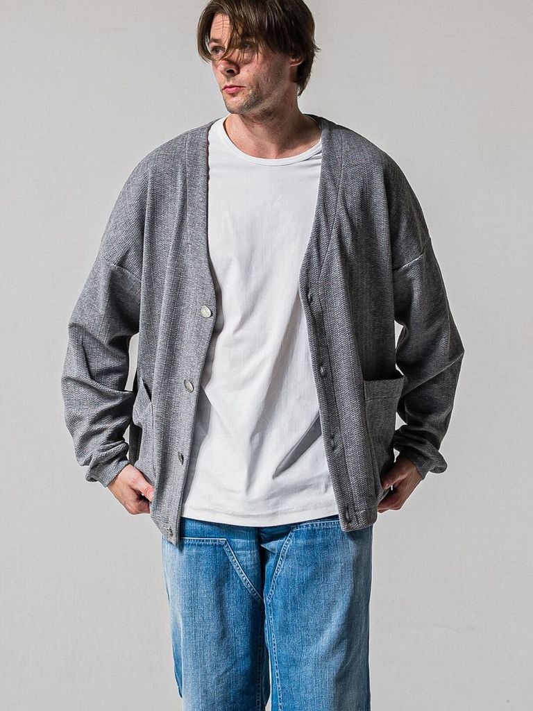 BLISTER KNIT C/D (グレー) ブリスターニットカーディガン