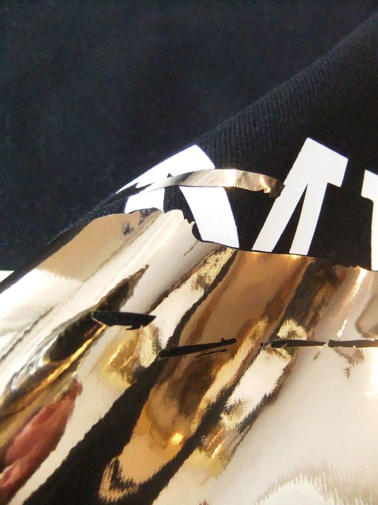 【MICALLE MICALLE Account】 HOMMAGE HFRMFS FOIL PAINT T-SHIRT (ブラック×メタリック) ロゴ T-SHIRT MAA105TEA