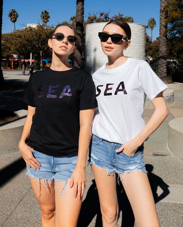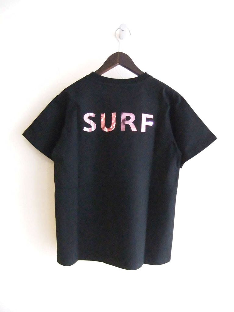 【MICALLE MICALLE Account】 SEA SURF FOIL T-SHIRT (ブラック×メタリック ピンク) ロゴ T-SHIRT MAA110TEA