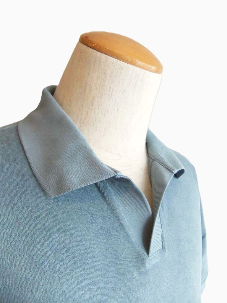 TERRY JOHNNY パイル S/S スキッパー ポロ (ブルーグレー)