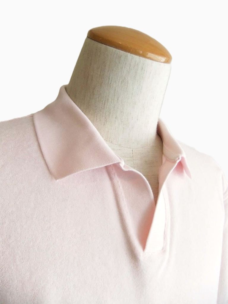 TERRY JOHNNY パイル S/S スキッパー ポロ (ライトピンク)