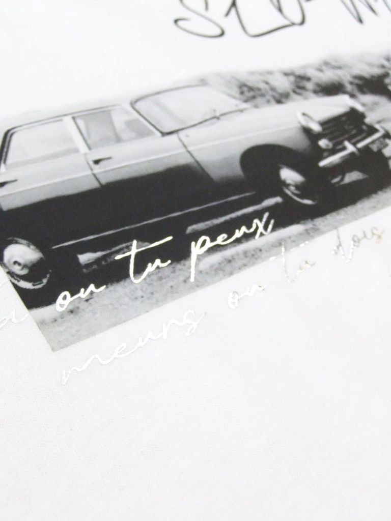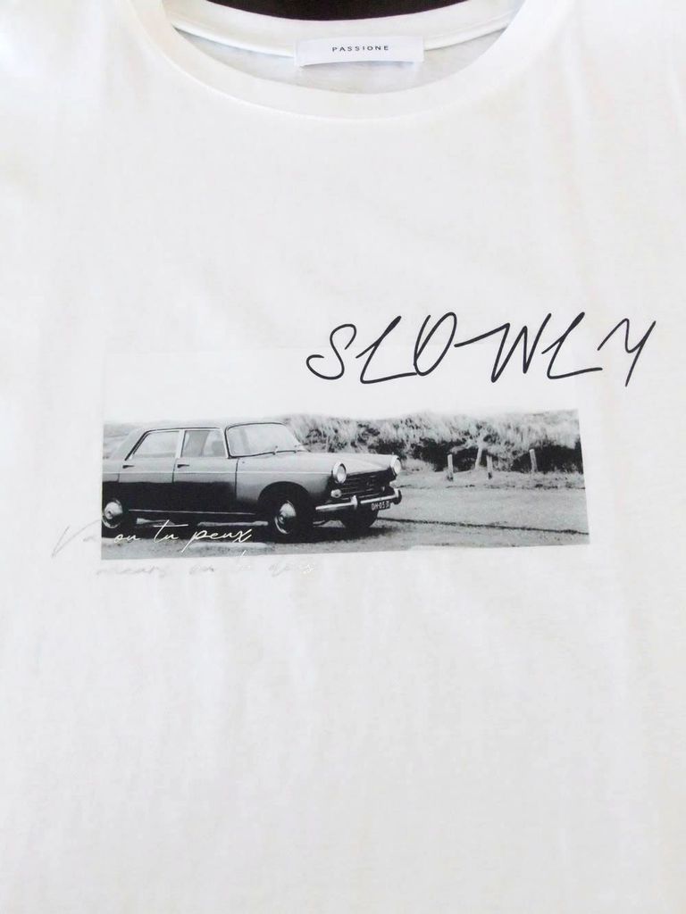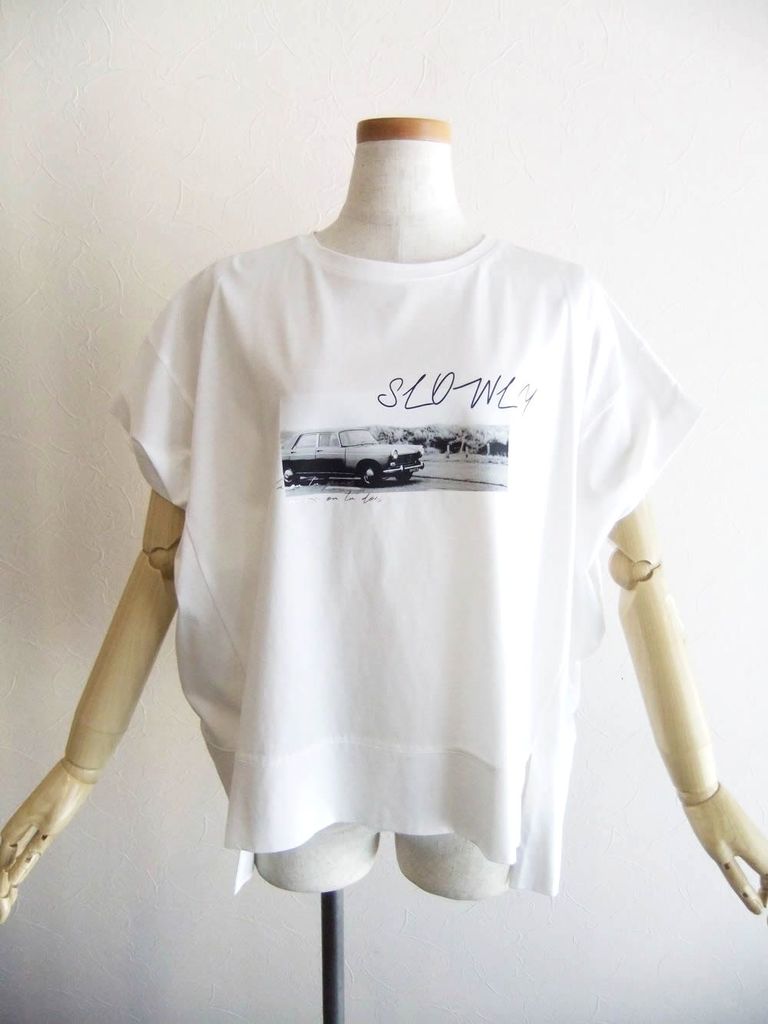 フォトプリント フロントスリット コクーン Tシャツ (ホワイト) 626939