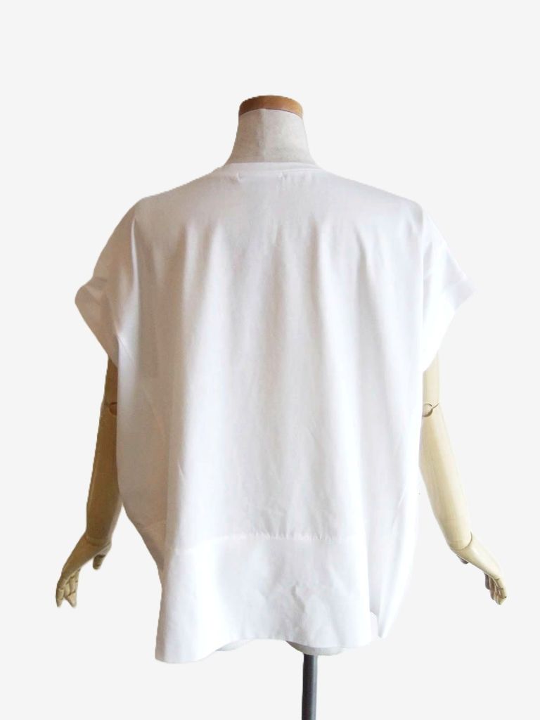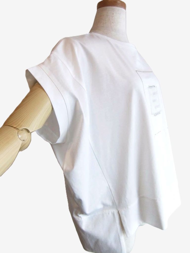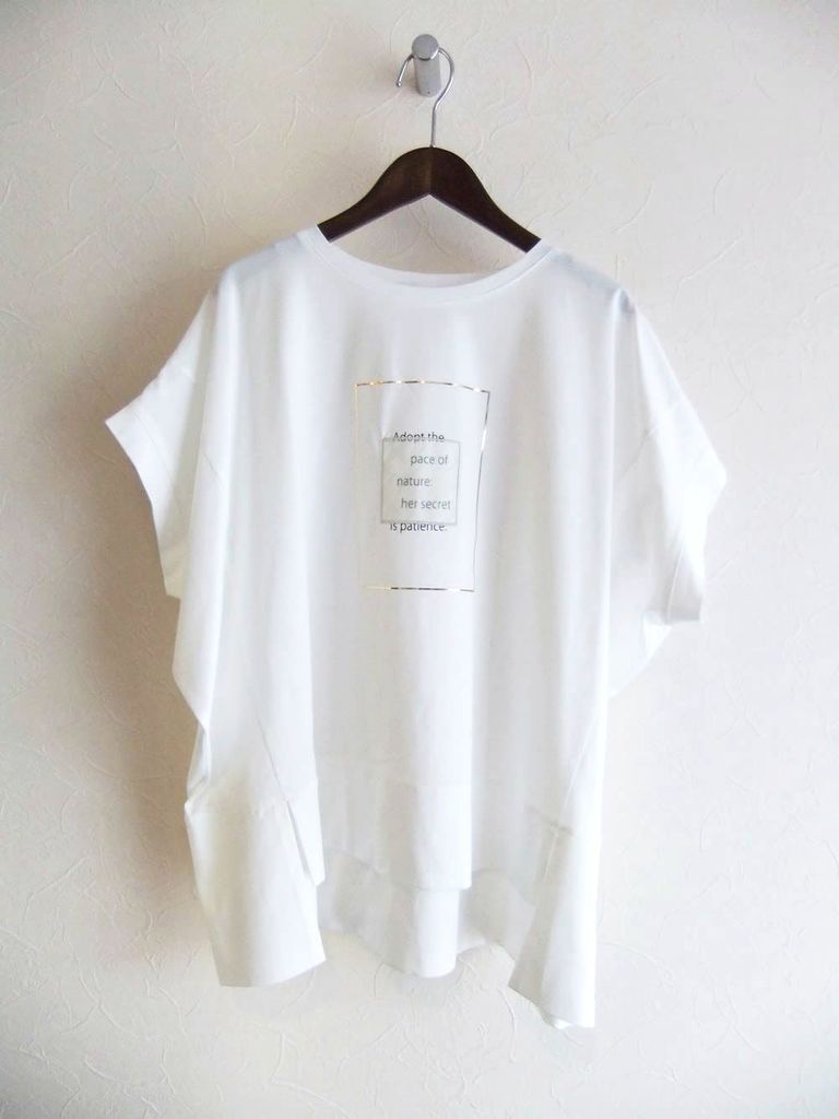 スクエア 箔プリント フロントスリット コクーン Tシャツ (ホワイト) 626938