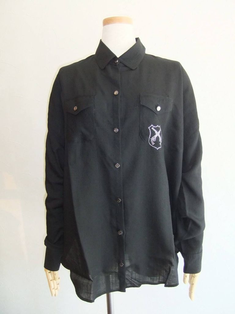 ☆"PISTOL EMBLEM"swarovski crystal。撥水加工を施した軽い肌触りのワイドシャツです。ドロップスリーブで動きやすい腕周り。袖の中にはタブベルトが設置され、ロールアップスリーブに変化させることが出来ます。☆